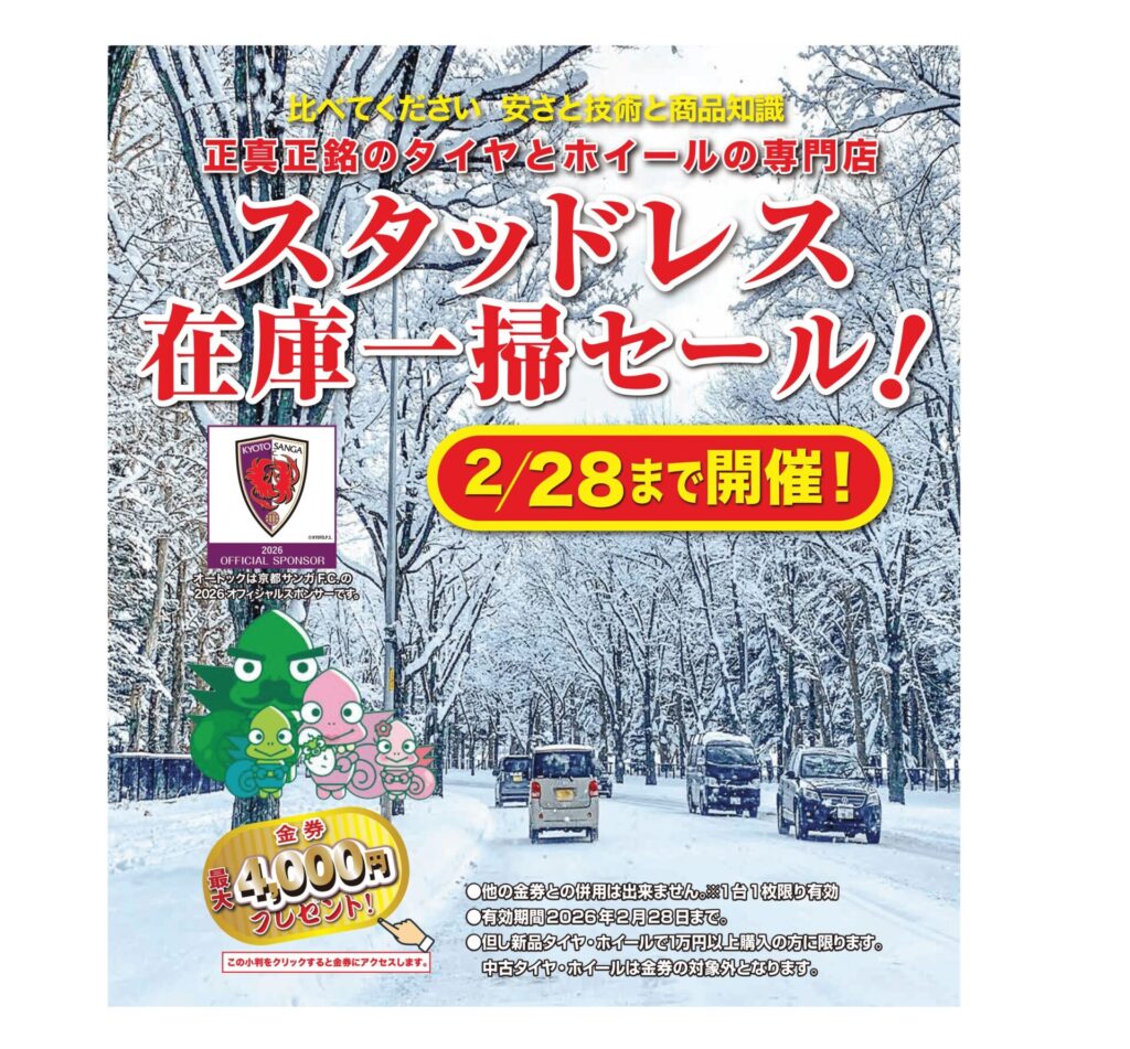 中古・新品のスタッドレスが大変おトクな1か月となっておりますので